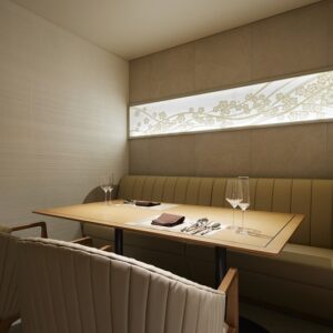 要将主餐厅的日本料理转换为法式餐厅的规划,作为法式餐厅,在拥有众多日本料理店、餐厅区域中,我们考虑了地域性丰富的福井的魅力要素,进行了设计。