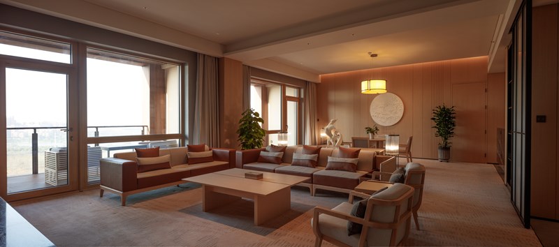 穿插在山海之间的云霞为设计主题,将此自然元素装饰到清冷素净的空间里,注重自然纹理朴素的美感,营造出静谧悠然的氛围。寓意具有青岛特色的风土人情。
