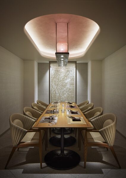 The plan is to convert the main dining room from Japanese cuisine to French cuisine. In an area with many Japanese restaurants and ryotei (traditional Japanese restaurants), the design of this French restaurant incorporates the charms of Fukui, which is a city with unique regional characteristics.